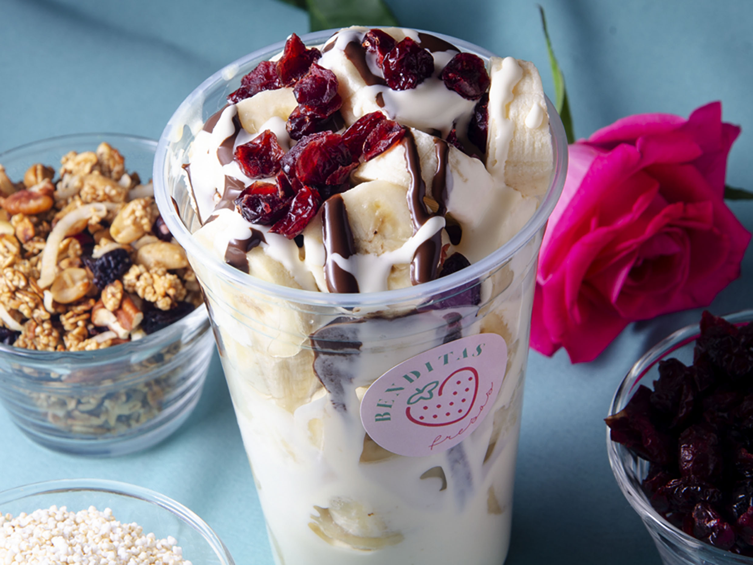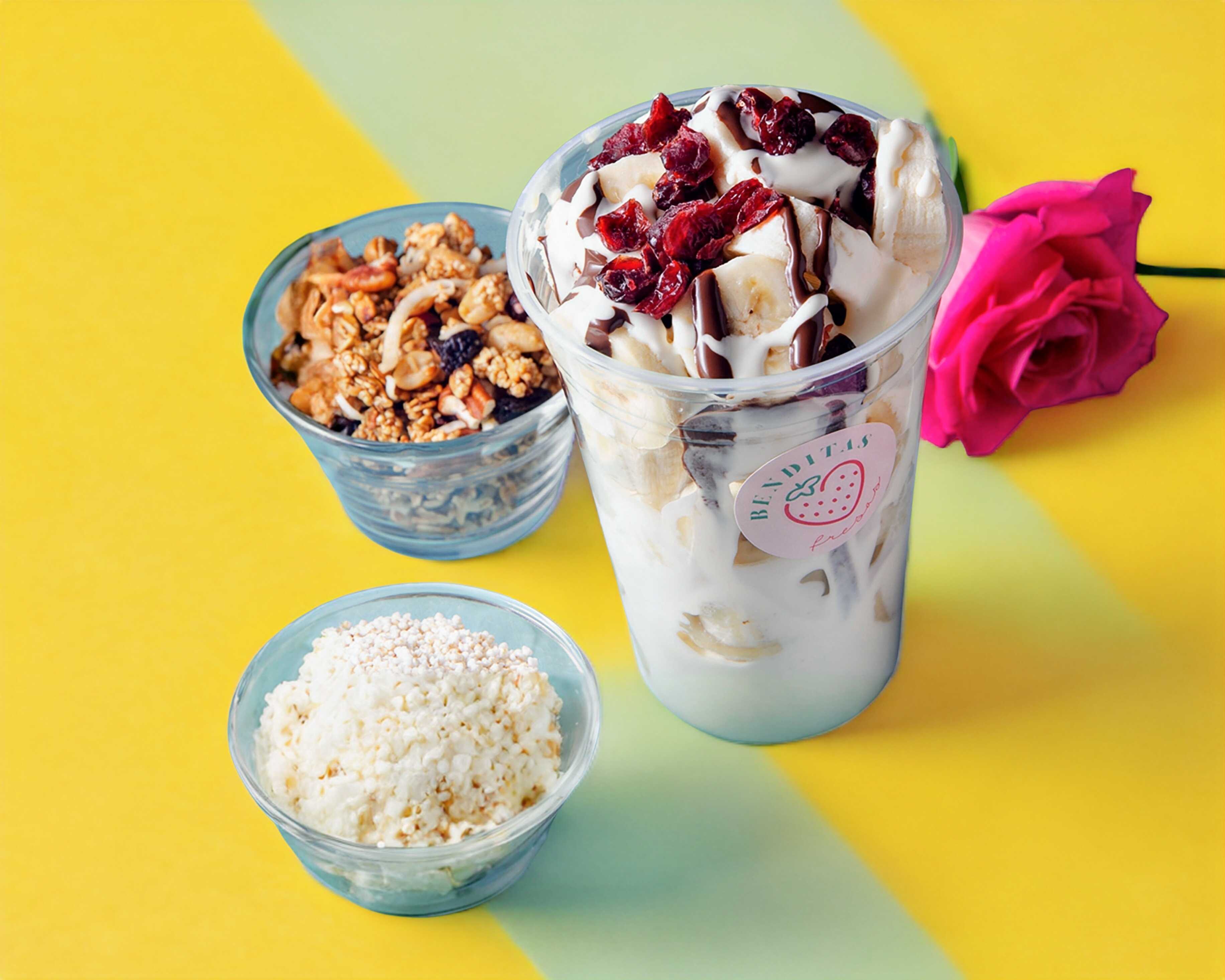 Arma tus plátanos a tu antojo plátanos tabasco bañados en crema artesanal y 2 toppings de tu elección, con un toque de vainilla y canela en polvo, pueden ir acompañados con un dip de chocolate líquido (sin azúcar).