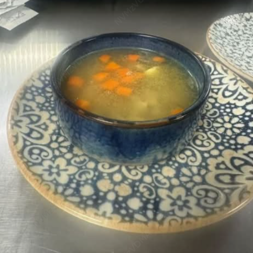 Jugo de carne de la casa acompañado de 7 pzas de camarón 350 ml.