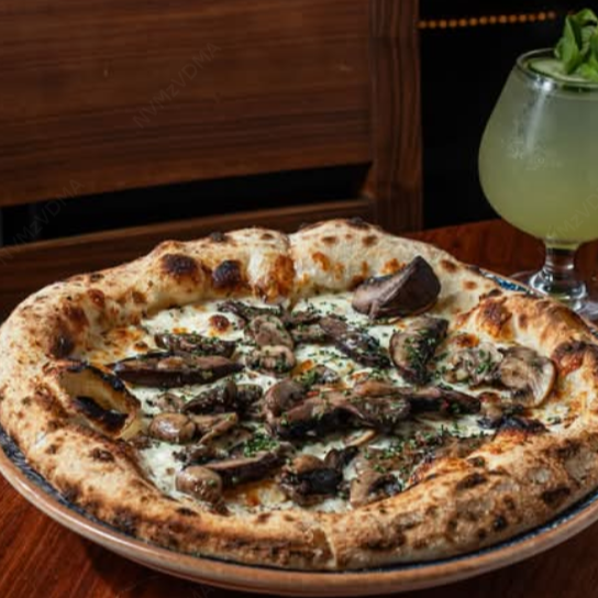 Con hongo portobello y champiñón salteado, un toque de ajo, salsa de cebollín y mozzarella.
