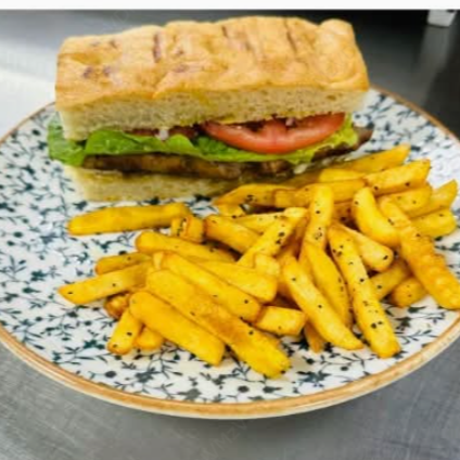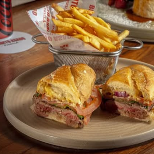 Pepito de lomo, papas francesas,1 flan, refresco o cerveza.