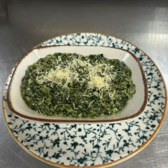 Espinacas a la crema salteadas con cebolla, crema y queso parmesano 200 g.