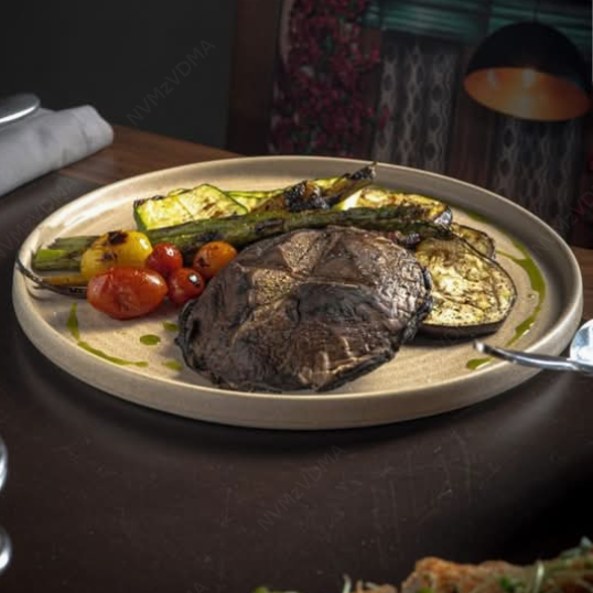 Vegetales a la parrilla aderezados con aceite de oliva, jugo de limón y albahaca 150 g.
