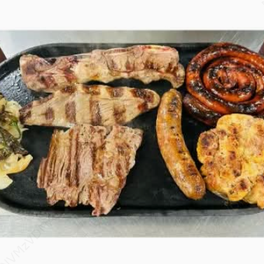 Parrillada con chorizo, chistorra, arrachera, picaña y asado de tira para 2 personas.