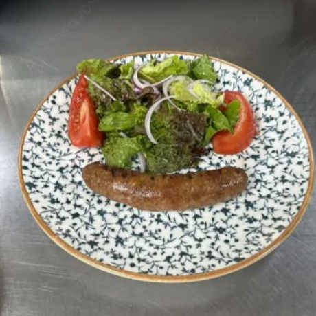Lechugas, espinacas, berros, jitomate, aguacate. Con vinagreta tradicional. Coronado con rebanadas de picaño horno.