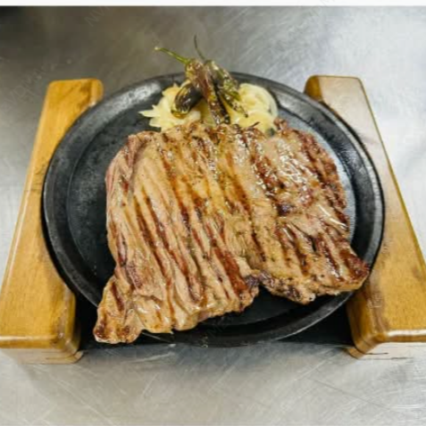 Corte premium de res, grueso y jugoso, cocinado a la parrilla para resaltar todo su sabor.