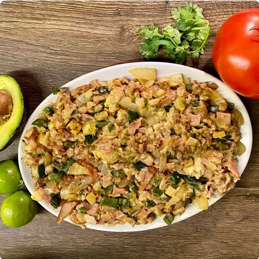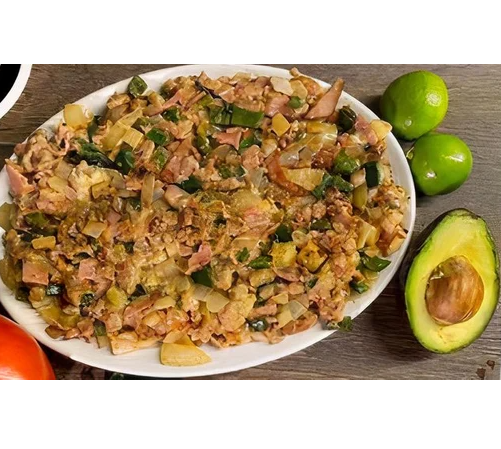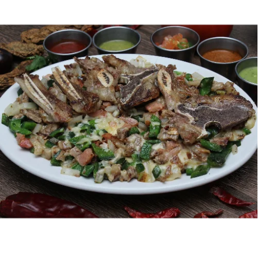 Alambre de carne a elección con tocino, cebolla, chile poblano, jamón.