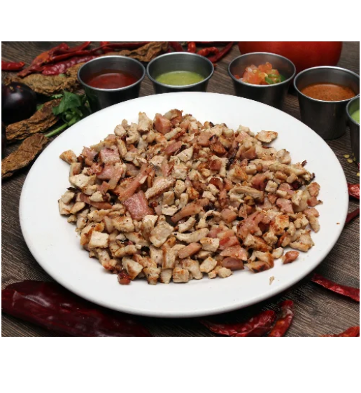 Carne de tu elección, tocino, cebolla y chile.