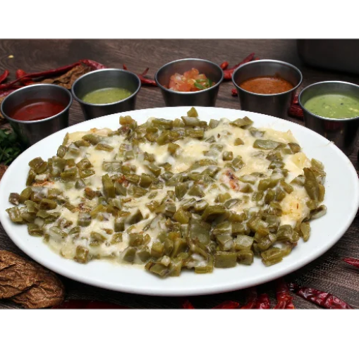 Nopales y 300 gramos de queso derretido con tortillas de harina.