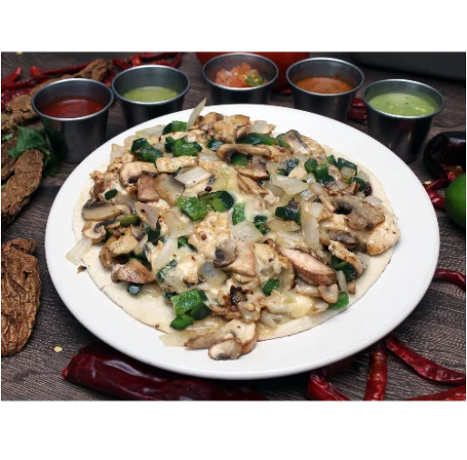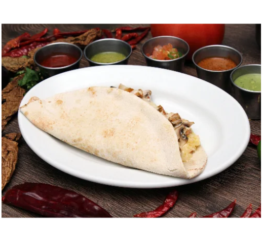 Quesadilla de queso con champiñones fileteados en tortilla de harina.