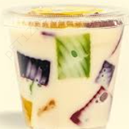 Cuadritos de gelatina de agua con crema, durazno y rompope.