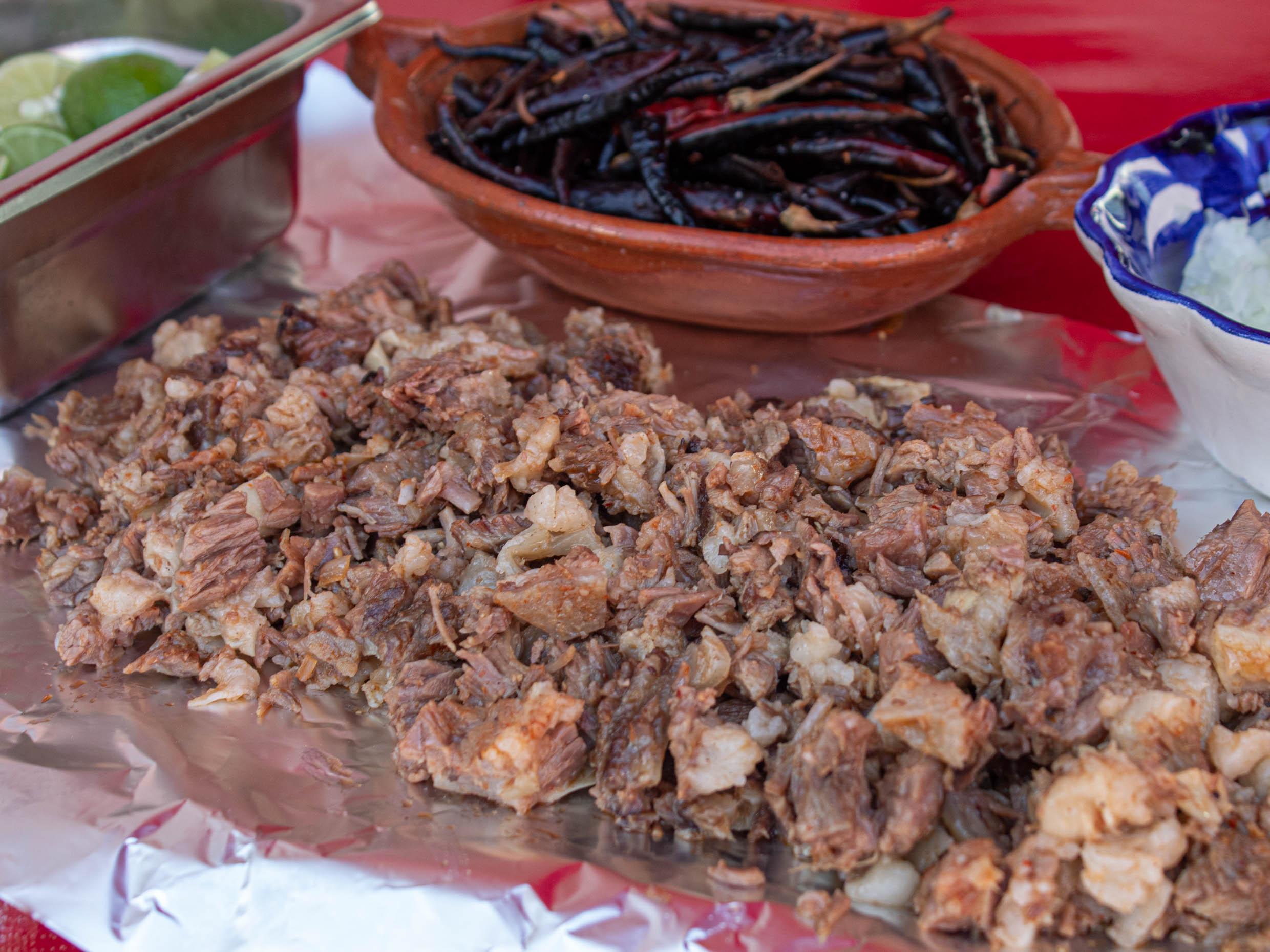 Incluye,salsa, cebolla,limones,chile de árbol asado,y rajas de cebolla con chile de abanero