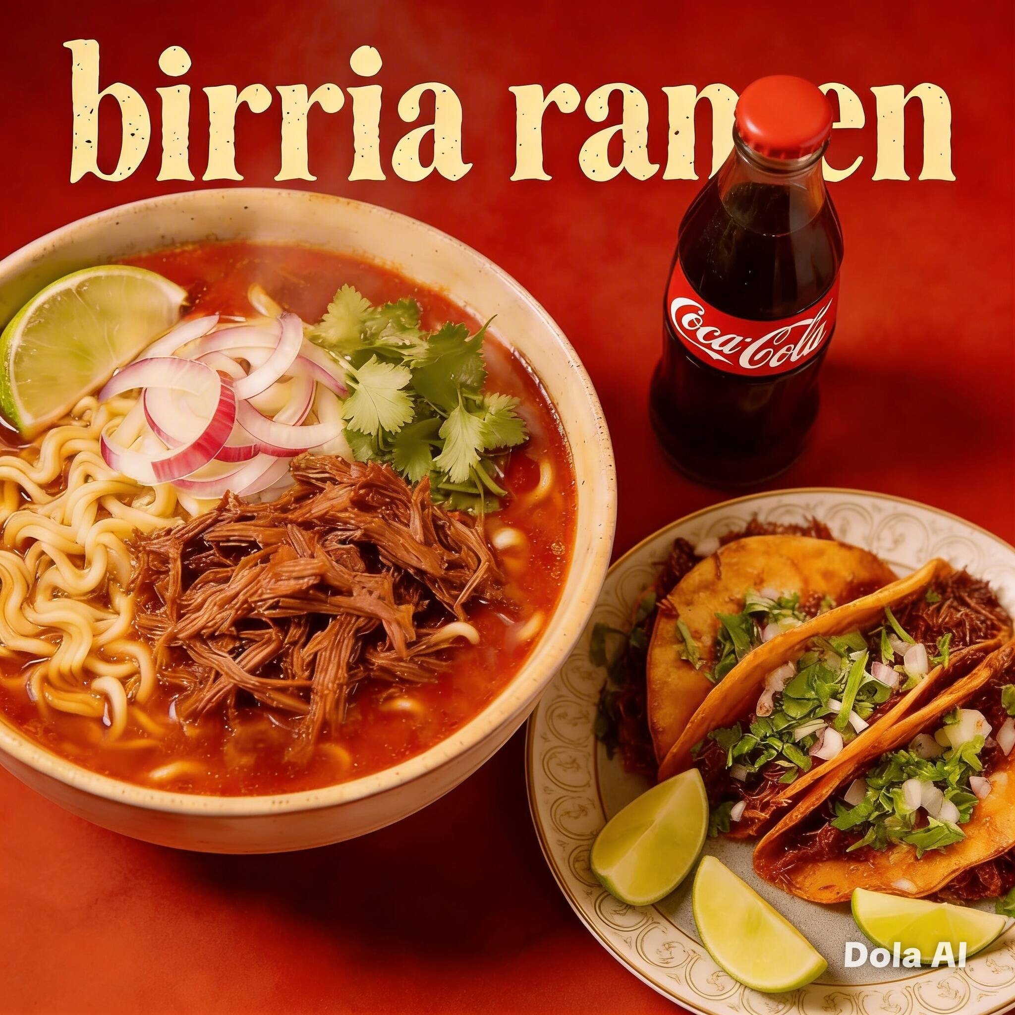 Birria /Ramen Medio Litro*1 + Taco de Birria / Adobado*2 + Coca Cola 355 Ml*1