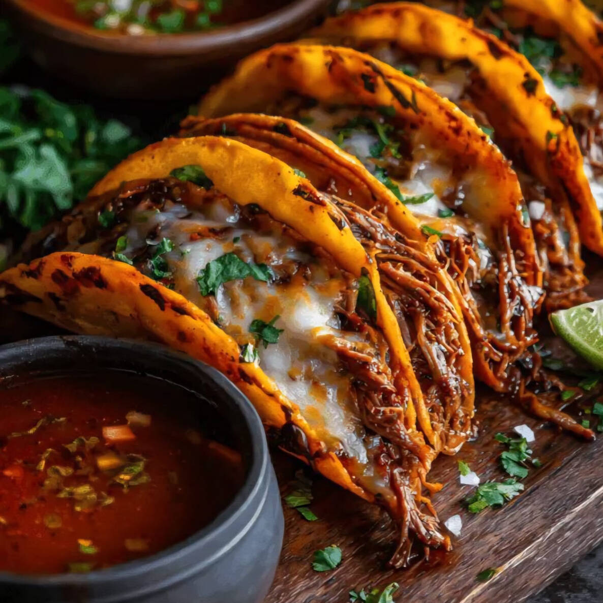 5 deliciosas quesabirrias acompañados con un consome Individual
