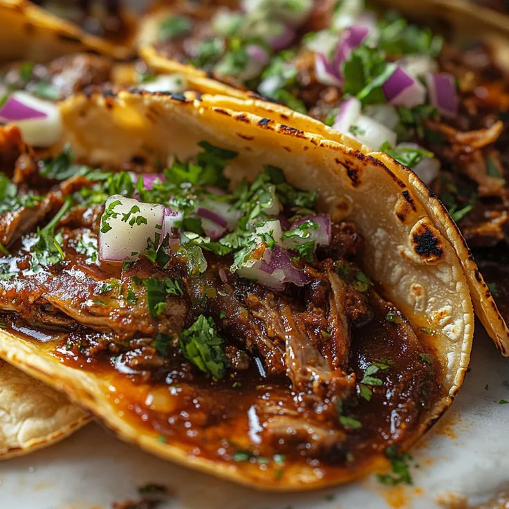 3 Tacos de tortillas de maíz bañadas en adobo especial, rellenas de nuestra birria estilo jalisco, incluye consomé personal de 365 ml.