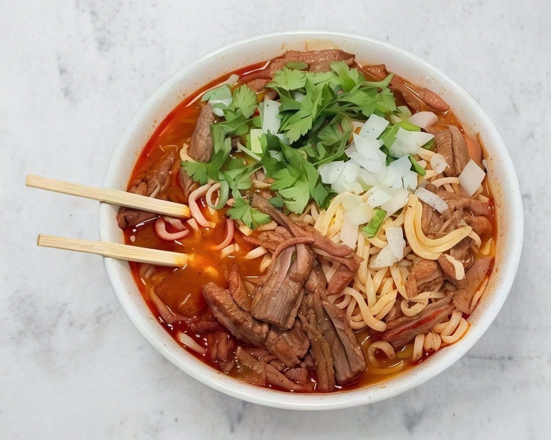 1 litro de delicioso birriamen con un exquisito sabor, preparado con carne de birria y queso fundido.