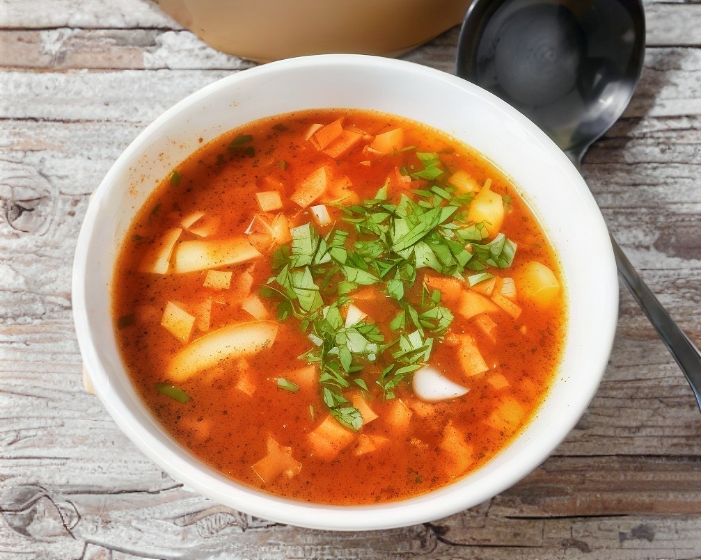 Consomé con cebolla y cilantro.
