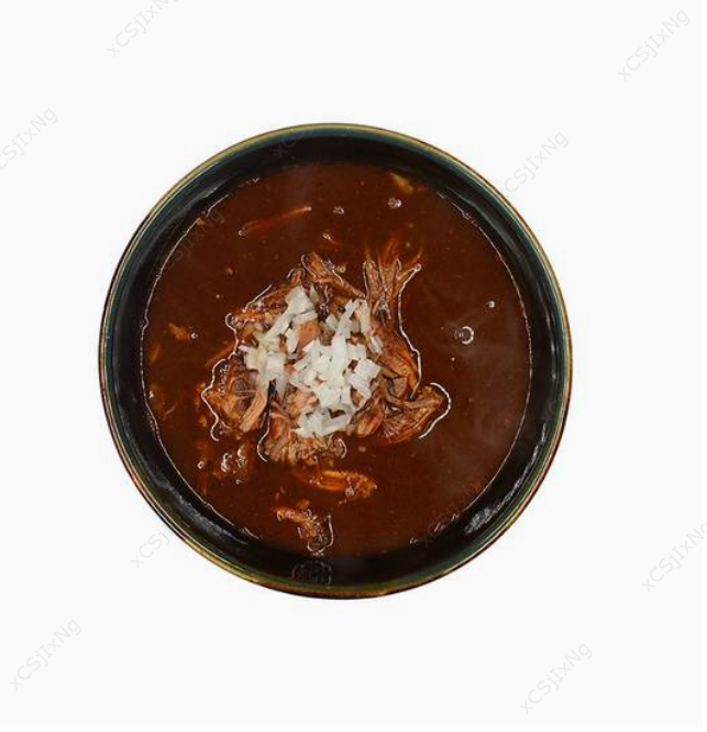 Tradicional birria de res tatemada estilo doña Socorro acompañada de tortillas de maíz hechas a mano y cebolla blanca.