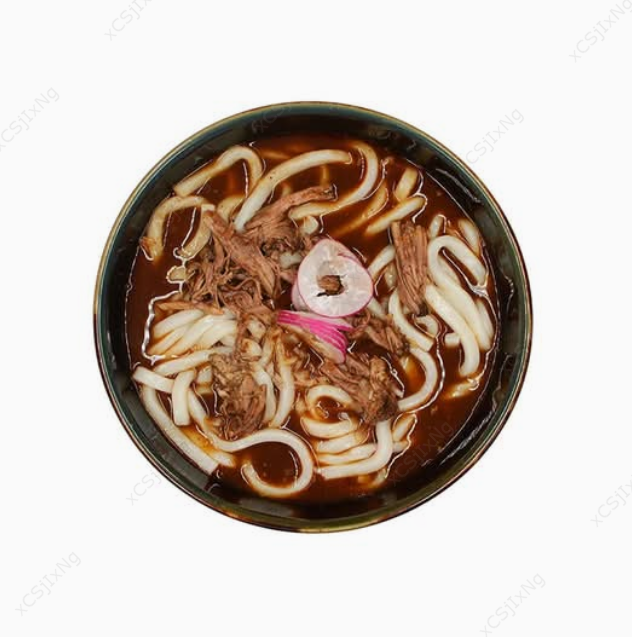 Birria de res tatemada con pasta udón y cebolla blanca.