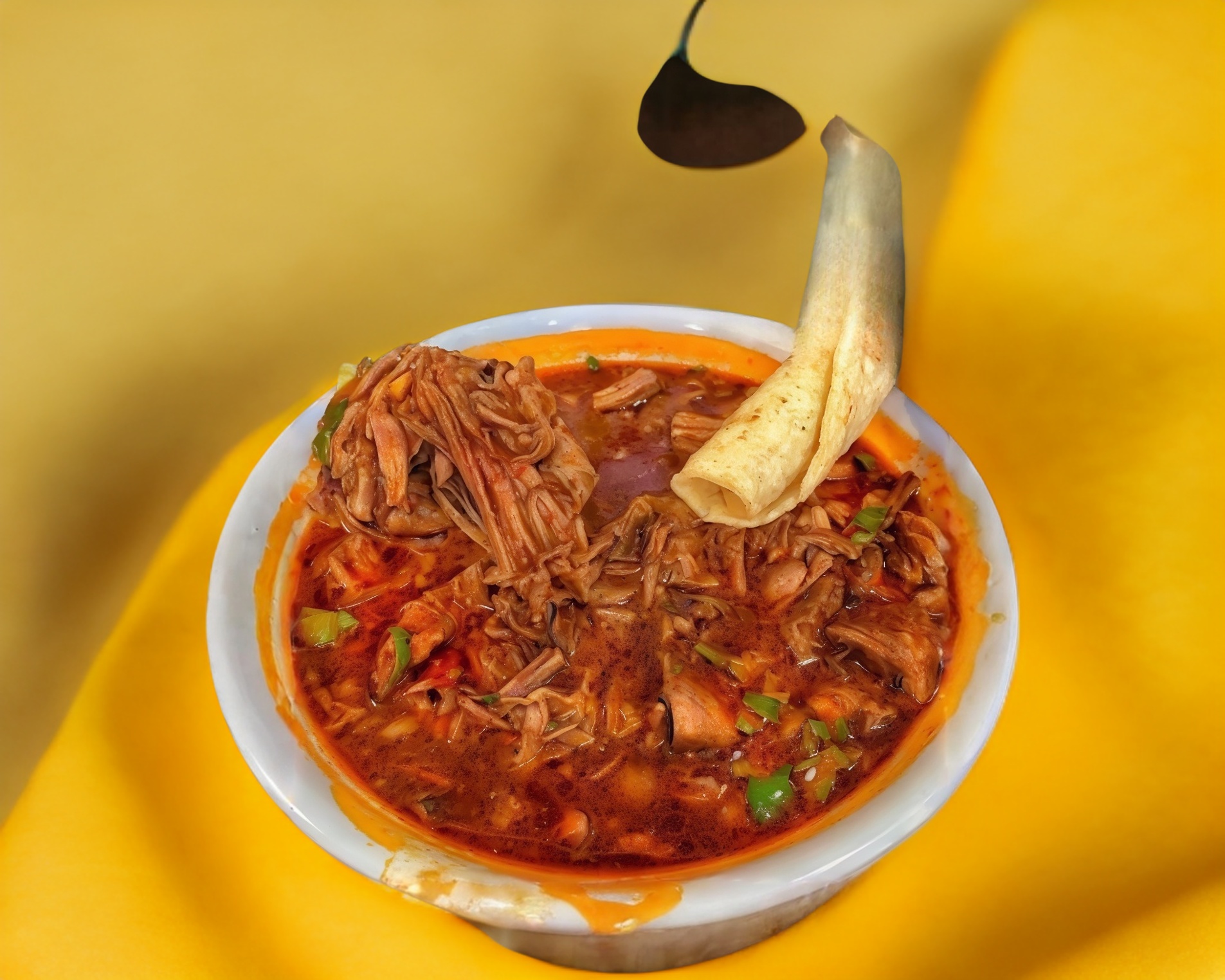 Gringa Grande con medio litro de consomé, tortilla de harina (de 28cm aprox) con carne de res y queso aprox para 3 personas