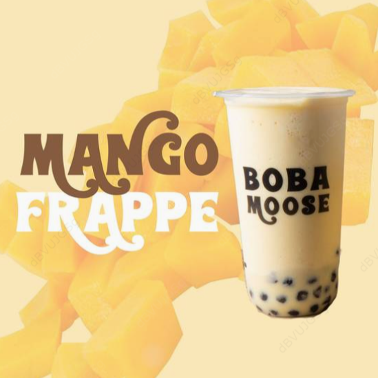 Bebida a base de jarabe de mango con leche de tu elección, perlas de tapioca y hielos triturados.