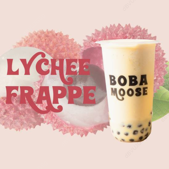 Bebida a base de jarabe de lychee con leche de tu elección, perlas de tapioca y hielos triturados.