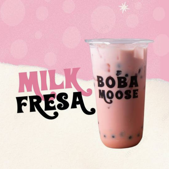 Bebida con polvo de fresa, leche de tu elección, leche condensada, perlas de tapioca y hielos.
