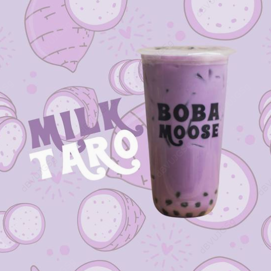 Bebida con polvo de taro, leche de tu elección, leche condensada, perlas de tapioca y hielos.