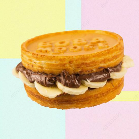 Waffles doraditos rellenos de Nutella y plátano fresco. Una combinación clásica y deliciosa.