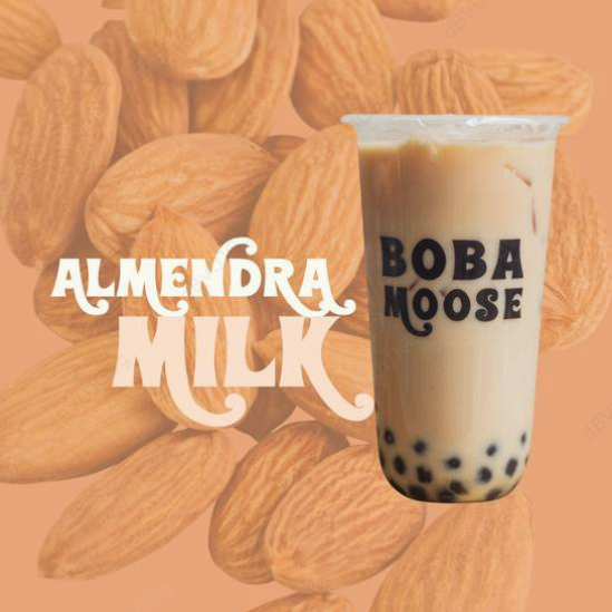 Bebida a base de polvo de almendra con leche de tu elección, perlas de tapioca y hielos.
