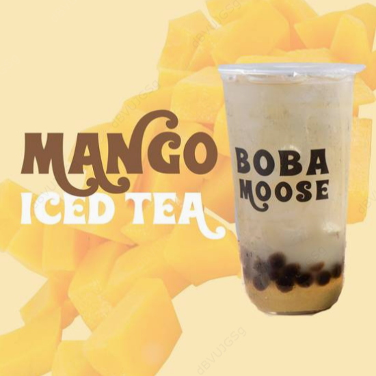Bebida con jarabe de mango, té a elegir entre oolong, verde o negro, perlas de tapioca y hielos.