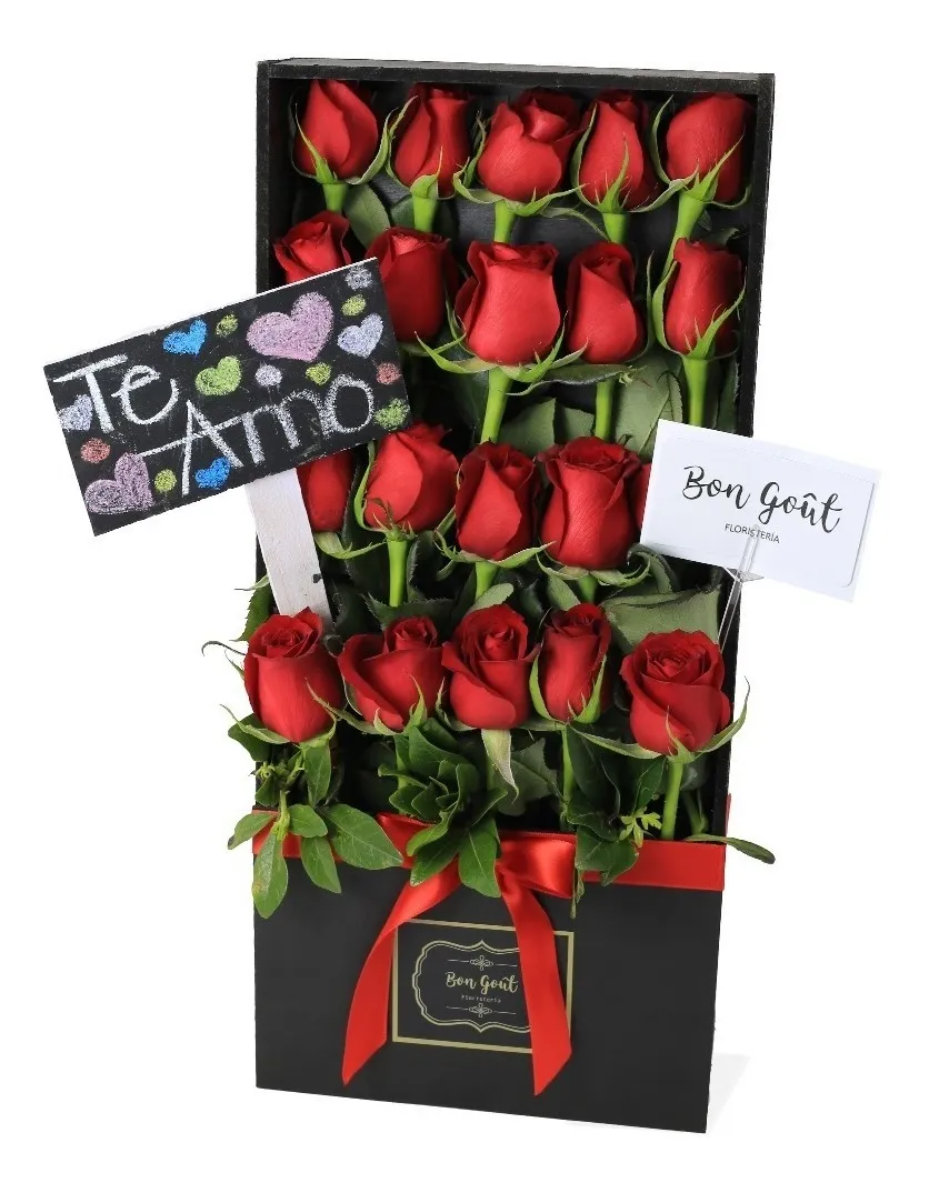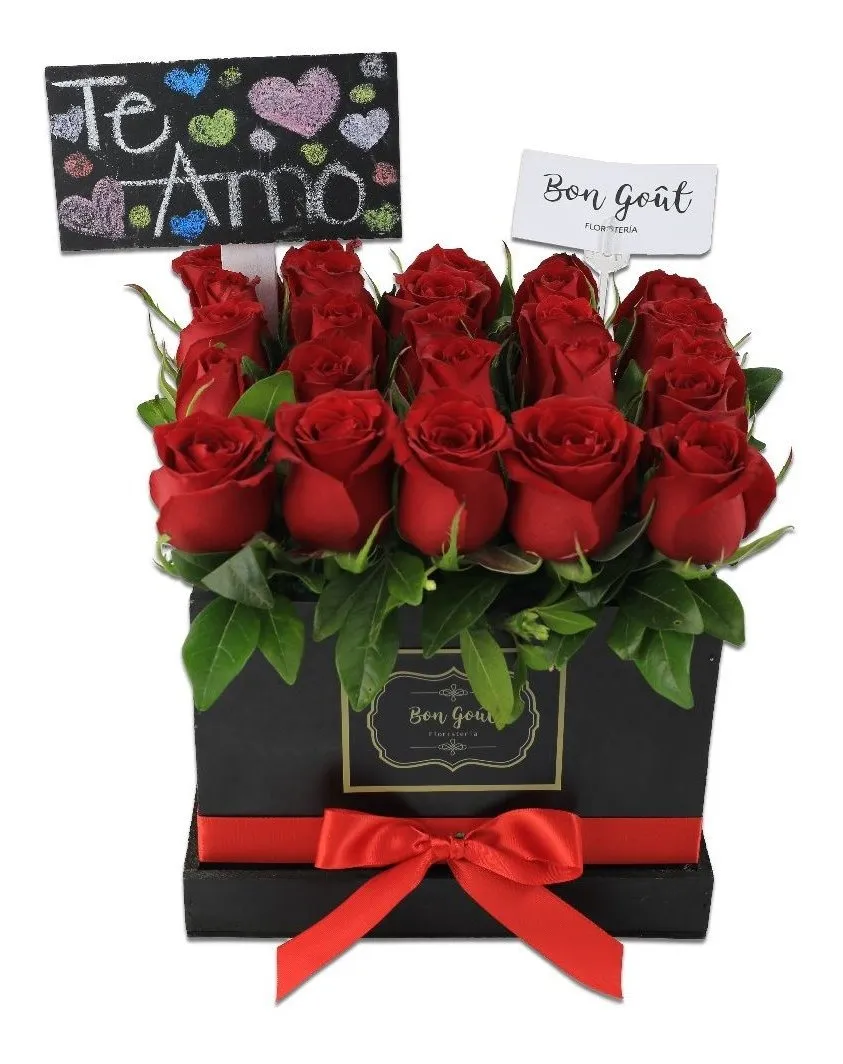 Caja de Rosas con Tapa Este Arreglo Incluye 25 Rosas de Invernadero
