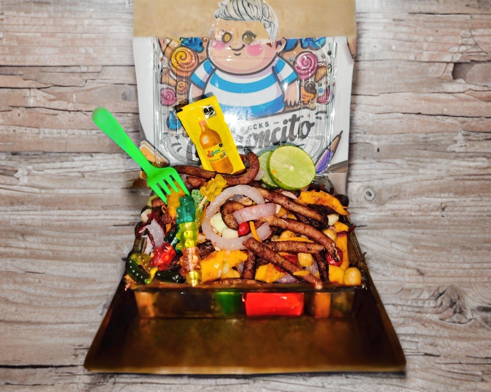 Deliciosas papas tradicionales del carrito,recien hechas, llegan a tu mesa,en su version del Glotoncito,150grms de papas y 50grms de gomitas a tu eleccion, mezcladas en salsas y aderezos para logar la combinacion perfecta👌, no te quedes sin las tuyas.