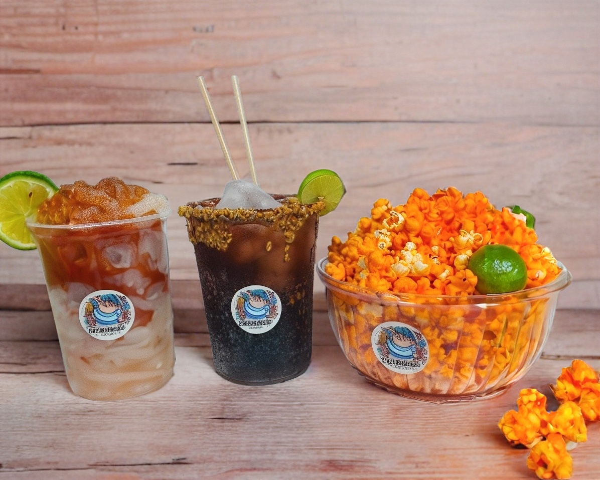 Tazon repleto de palomitas recien hechas de sabores , natural, chile y queso. Llevalas para ver tu pelicula o serie favorita.
