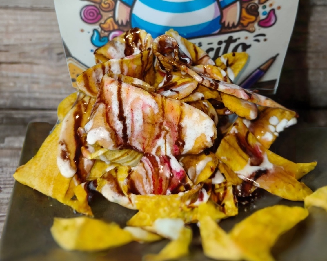 Frescos y deliciosos,charritos de maiz, bañados en salsas distintas tu eleccion , con un toping de 50grms de cacahuates a elegir.no te quedes sin probarlos