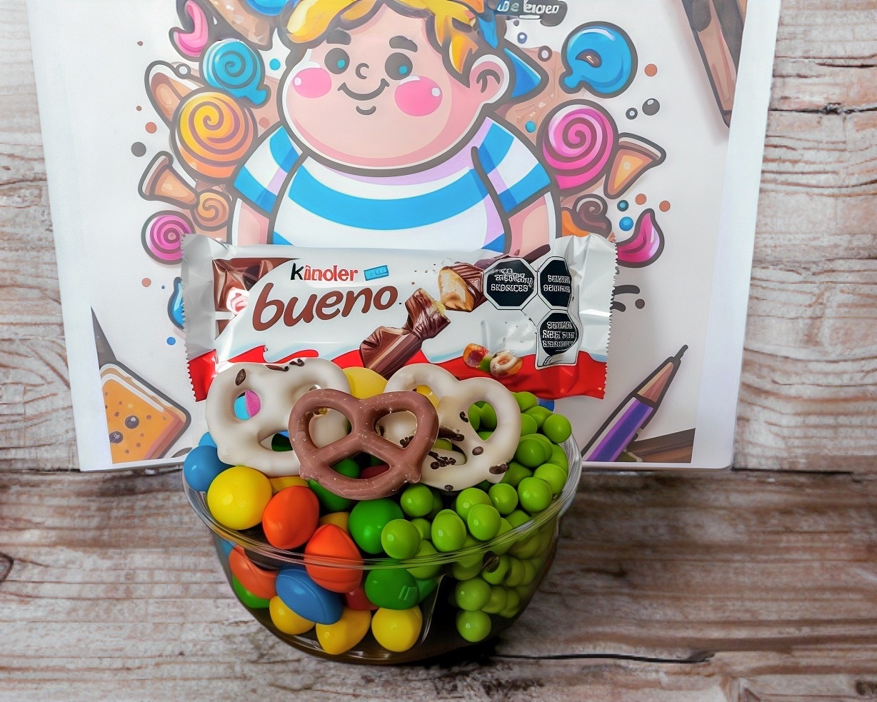Para el detalle de la Glotoncita,Llega el trio favorito de muchos conformado por tus chocolates favoritos, Chocoretas, tampocitos(bombom de chocolate),huevitos, almendras, M&M cacahuate; lunetas M&M, Pretzels,suspiritos.bañado en chocolate hersey o lechera, agrega tus chocolates como toppin extra, kinder bueno, snearks, milk way