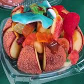 Deliciosa manzana forrada con tamarindo y miguelito acompañada de gomitas