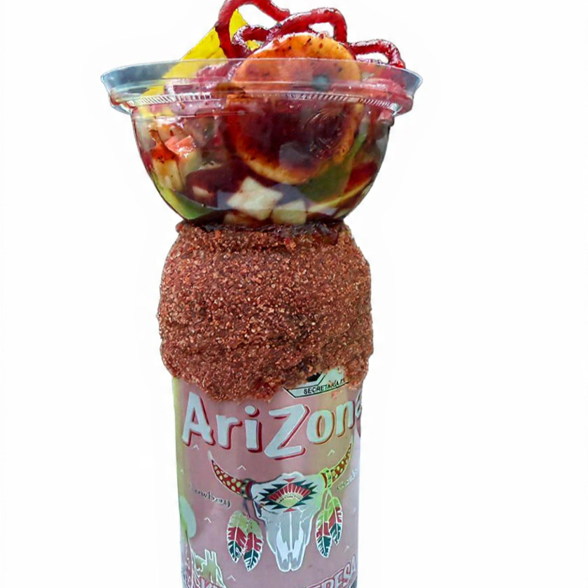 Vaso de 1 L, lleno de cueritos picados bañados en salsas de tu elección.