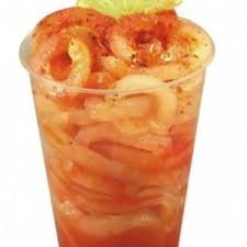 Jugo de fruta natural delicioso y refrescante, escarchado con tamarindo y miguelito, acompañado con fruta y gomitas