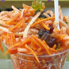 Vaso 500 ml de fruta rallada jícama, zanahoria y pepino preparado con gomitas, cacahuates y salsas.