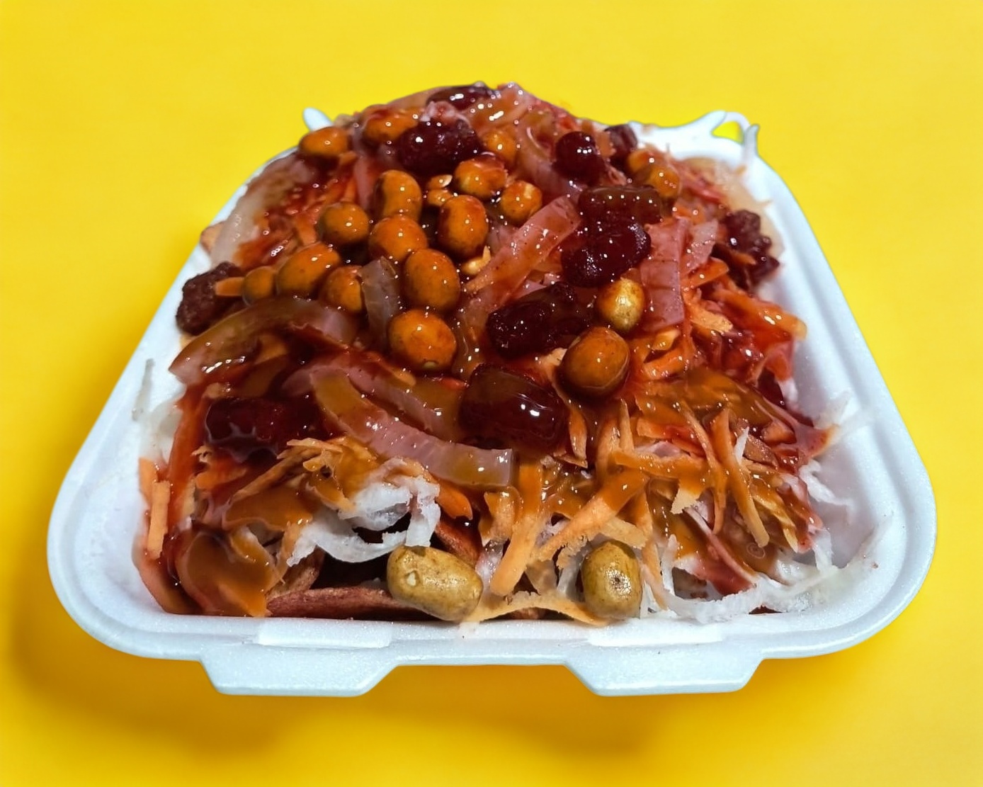 Papas del sabor de tu elección preparadas con zanahoria, jicama, pepino, cacahuates, cueritos, gomitas, chamoy, salsa botanera y miguelito (escoge los ingredientes y prepáralas a tu gusto)