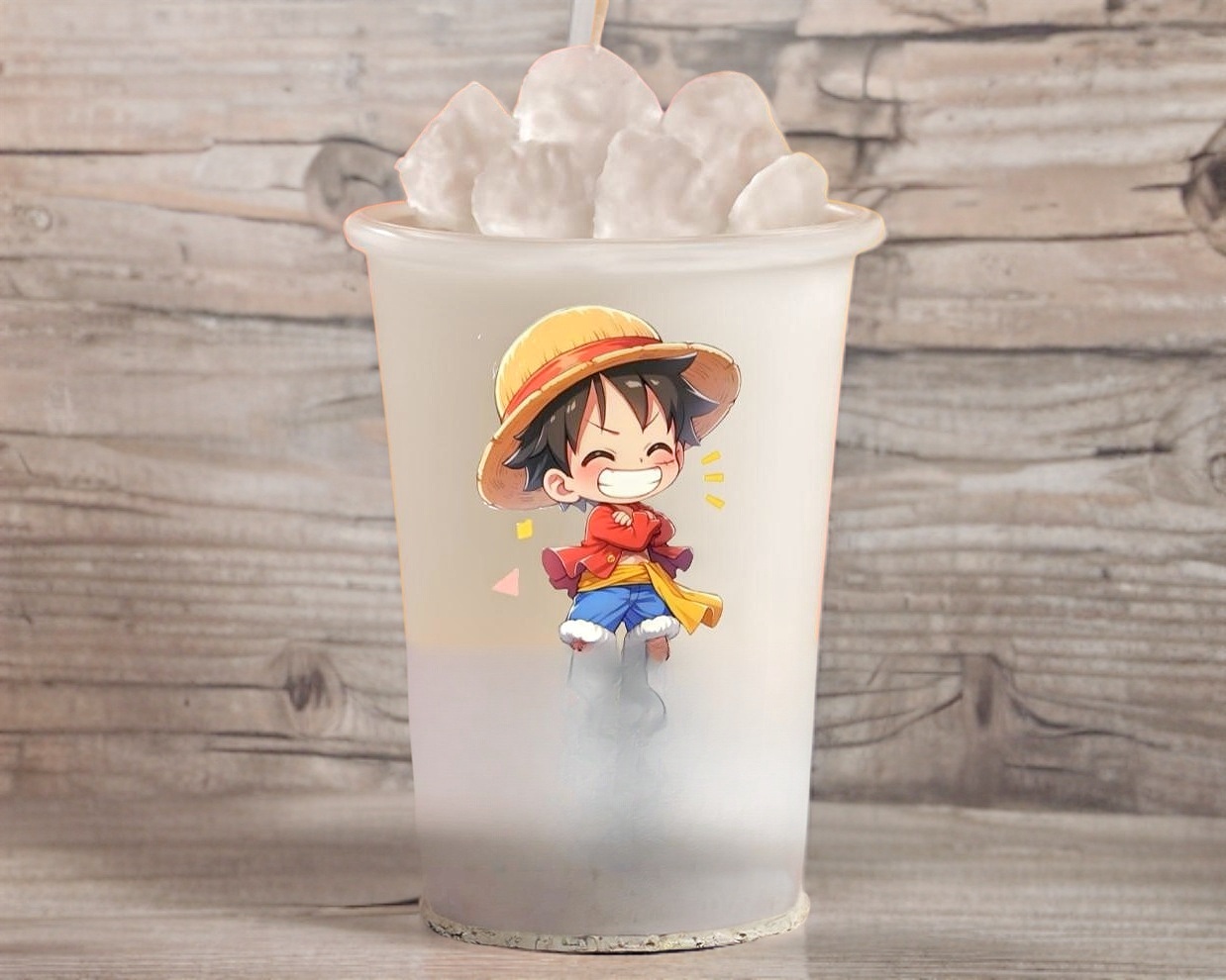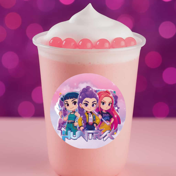 Frappe de fresa yakult con perlas explosivas de fresa y bubli nube