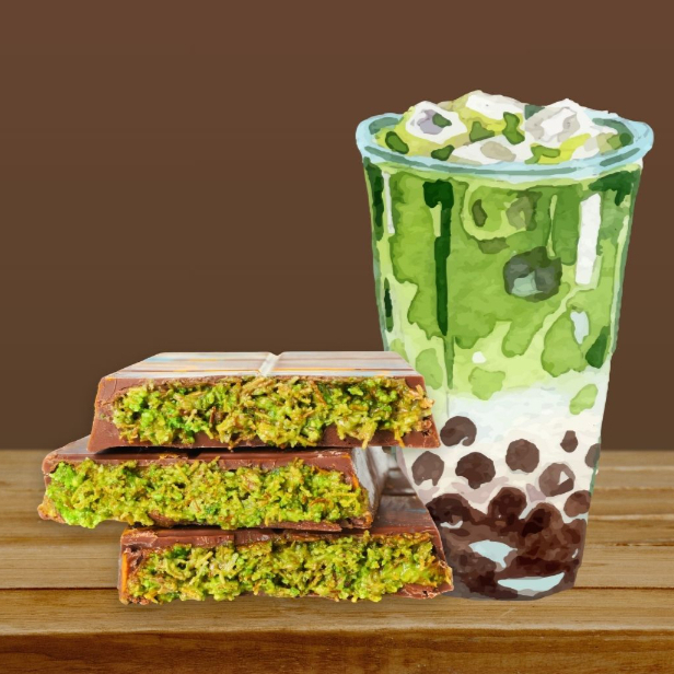 Sabor chocomenta con perlas golden y una capa de bubli nube
