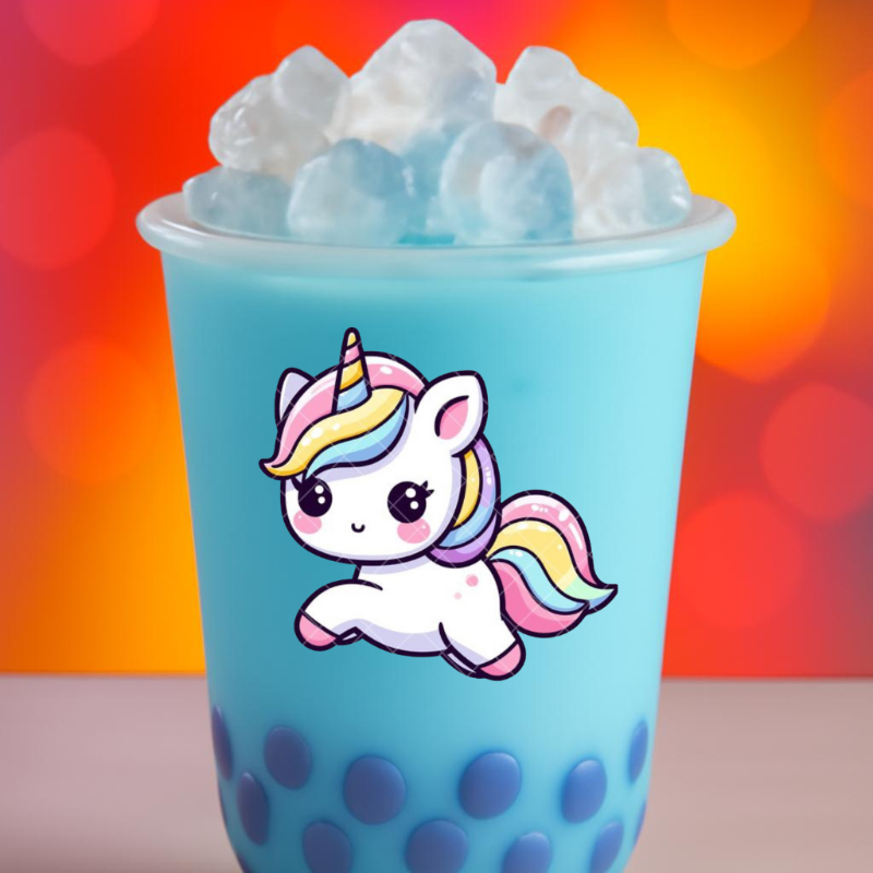 Sabor algodón de azúcar azul con perlas de blueberry (leche deslactosada)