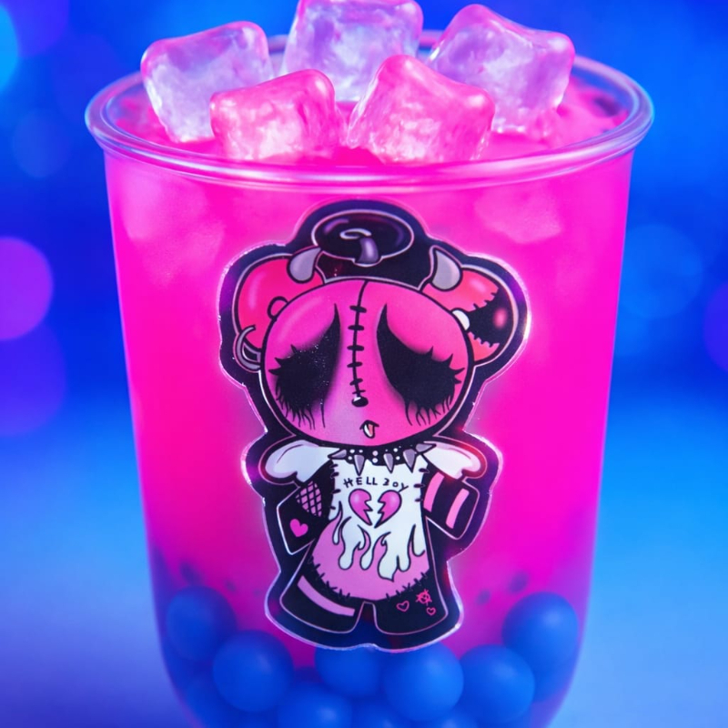 Sabor limonada rosa neón con perlas de blueberry