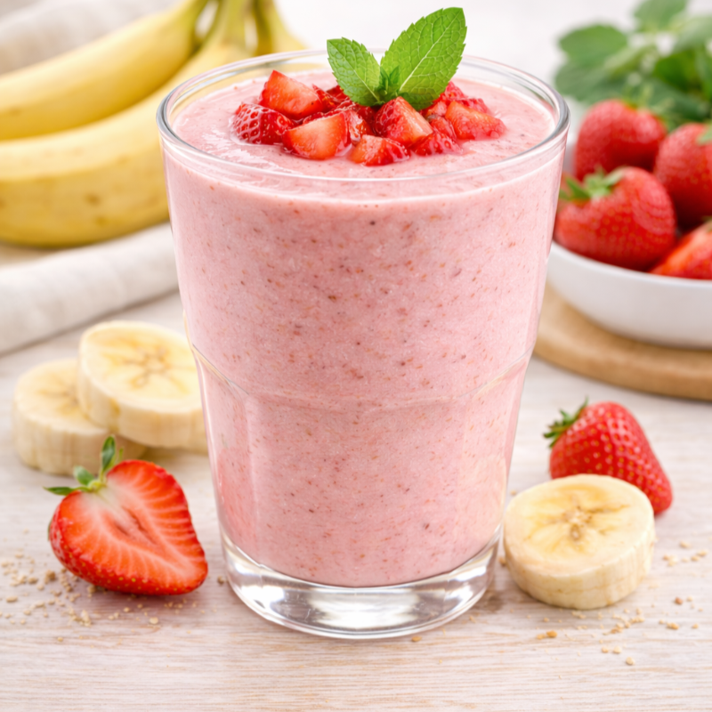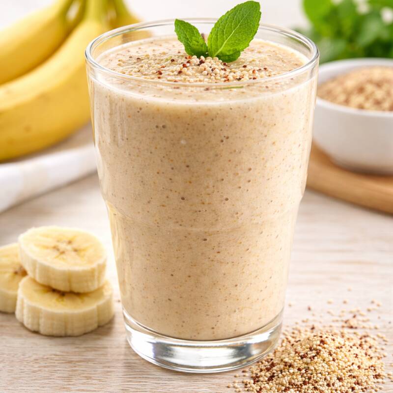 Batido energético de plátano con una textura suave y un sabor dulce natural.