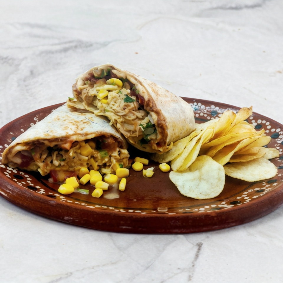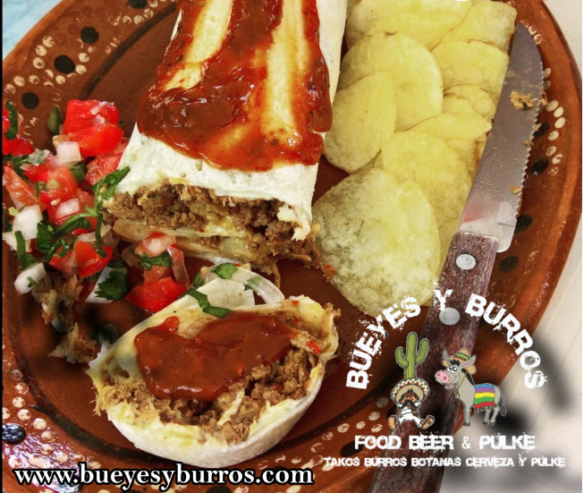 tortilla de harina grande (40cm),Carne campechana, frijoles, queso y papas, salsa chipotle.