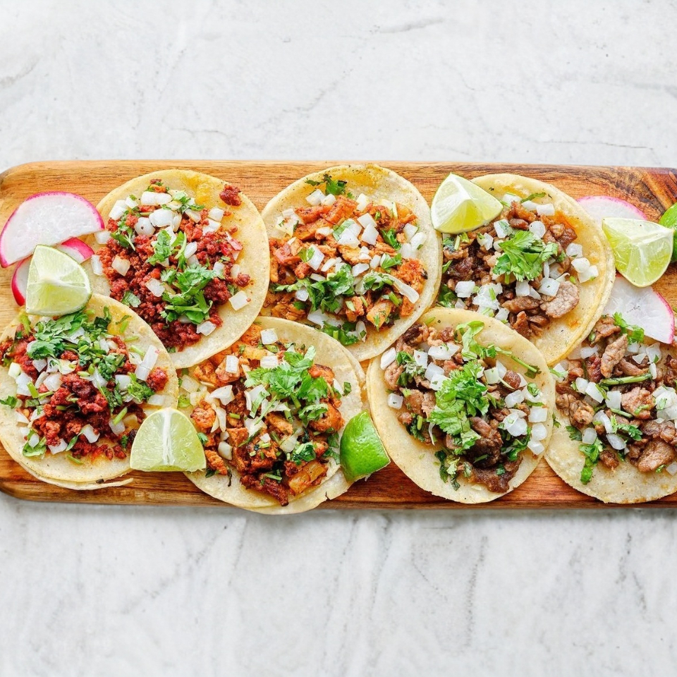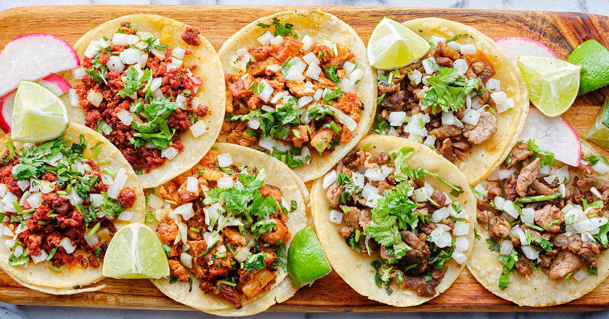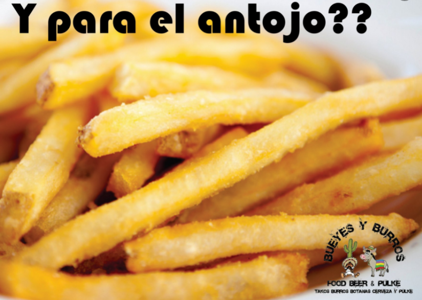 Bistec, pimientos, elote, champiñones, tocino, frijoles, queso y papas.