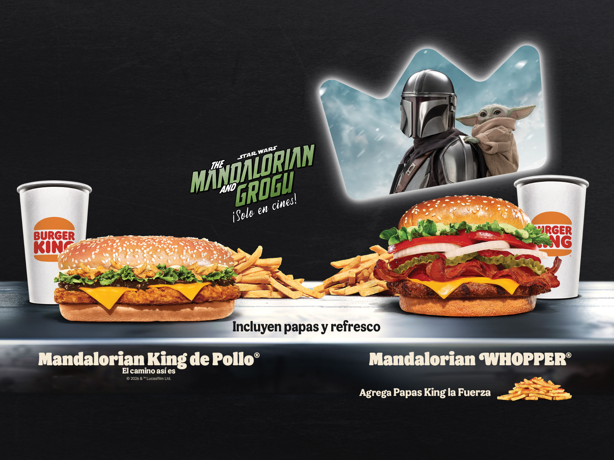 El antojo que todo Rey necesita. Elige entre hamburguesa con queso o 6 nuggets + papas chicas. (760 cal., 368 gr.)