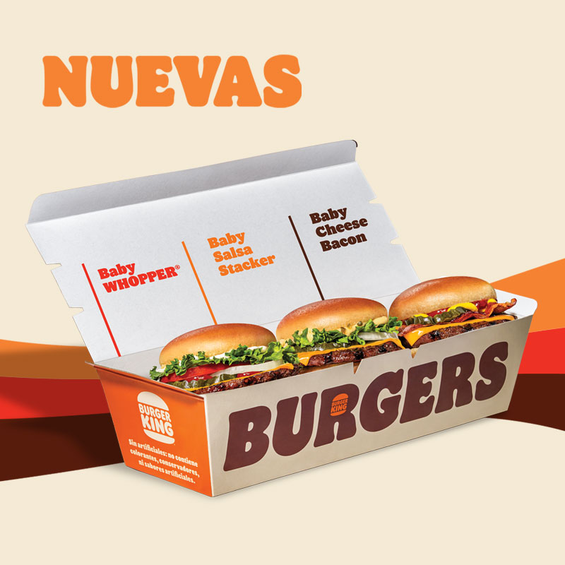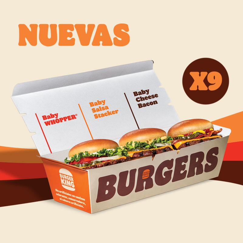 ¡Nuevas! Baby Burgers: Baby Whopper, Salsa Stacker y Cheese Bacon. Nueve minis para compartir….o no.
