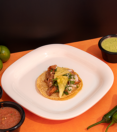 Rico taquito de carne al pastor en tortilla de maíz del #10